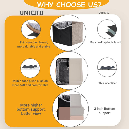 Dog Car Seat for Small Dogs, Elevated Dog Booster Seat Pet Travel Carrier Bed for Car with Adjustable Straps Pet Car Booster Seat for Small Dogs Cats
